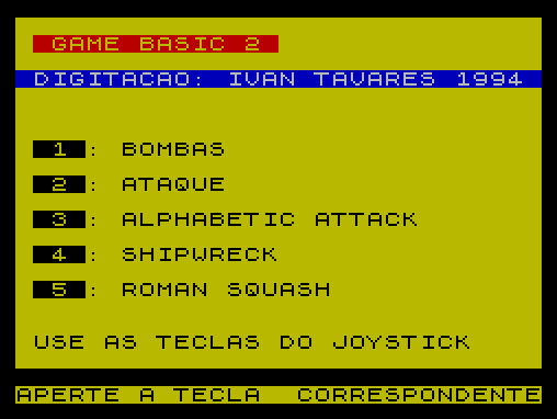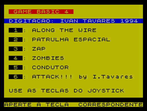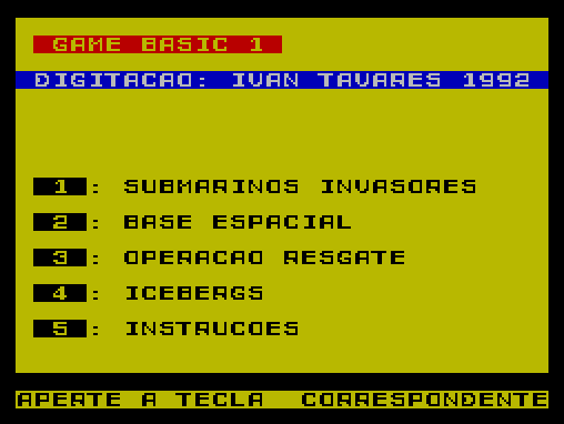 Os arquivos .z80 incluídos neste grupo foram digitados de várias fontes (revistas, livros etc) que somadas deram origem a programas em basic exibidos através de menus. A maioria dos sub-programas devem ser executados até o fim para surgir a opção "Menu", outros retornam ao menu apertando "Shift" + "Break" e outros ainda precisam que o arquivo em basic seja acionado todo novamente (Run). Seguem abaixo algumas telas dos programas e os botões de download dos arquivos.